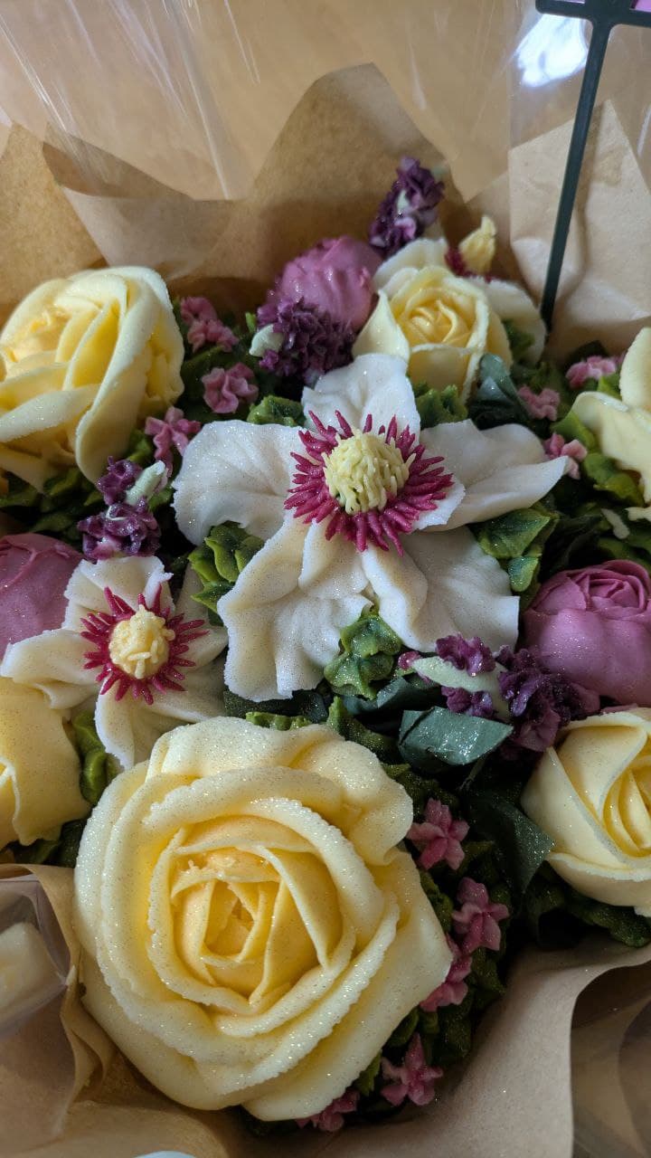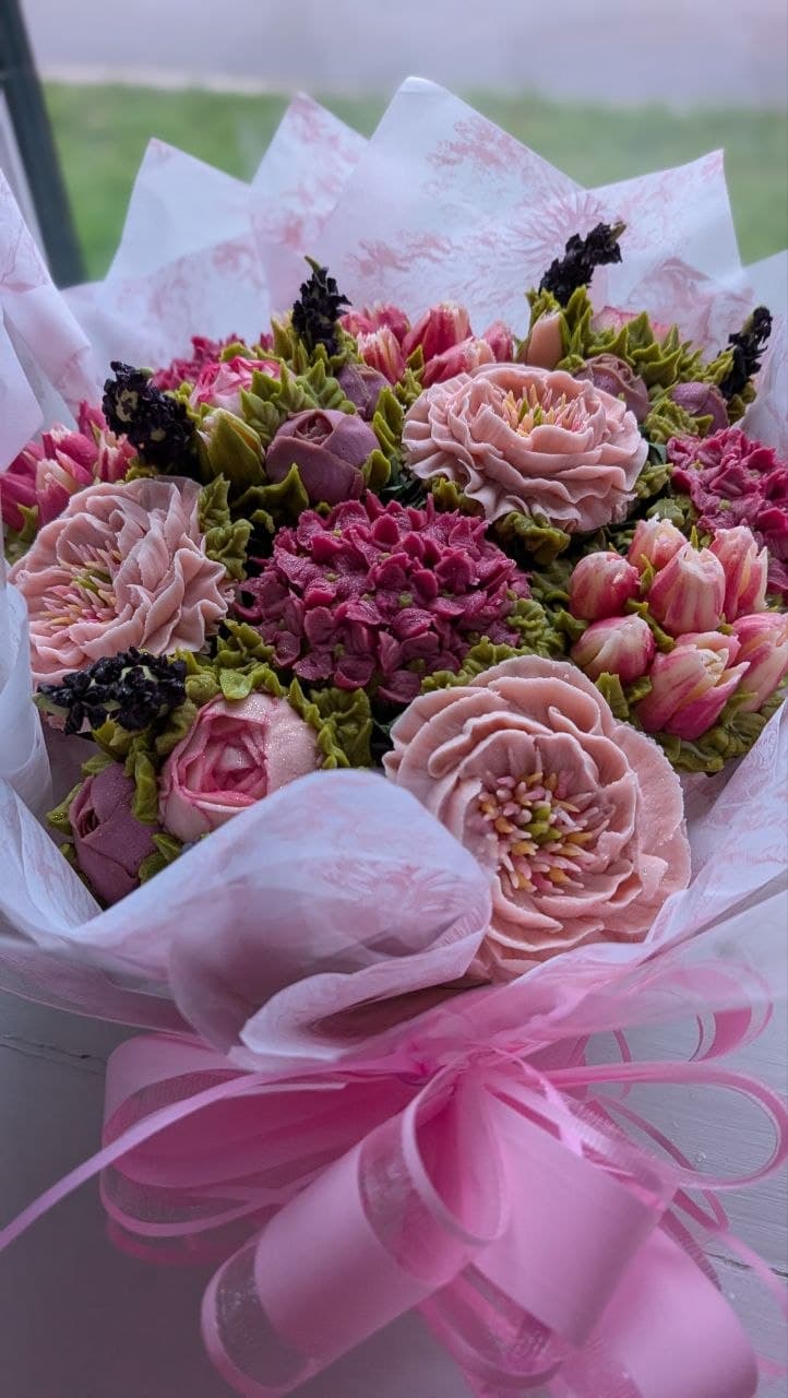 At Cherry & Black, our floral cupcake bouquets make the perfect gift. Your favourite florals in your chosen palette arranged in a beautiful bouquet, wrapped and boxed, ready to be presented to your loved one. 7 Blooms £50, 12 Blooms £75, 19 Blooms £110